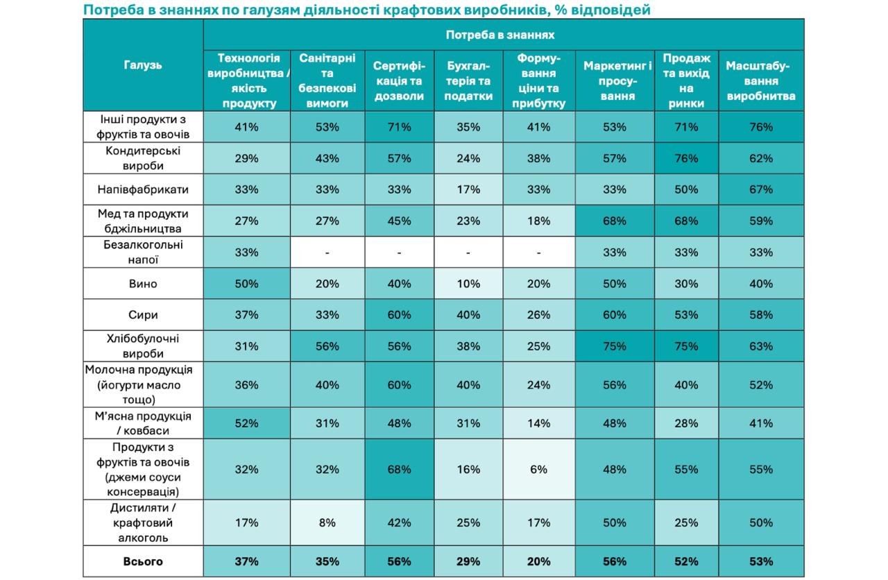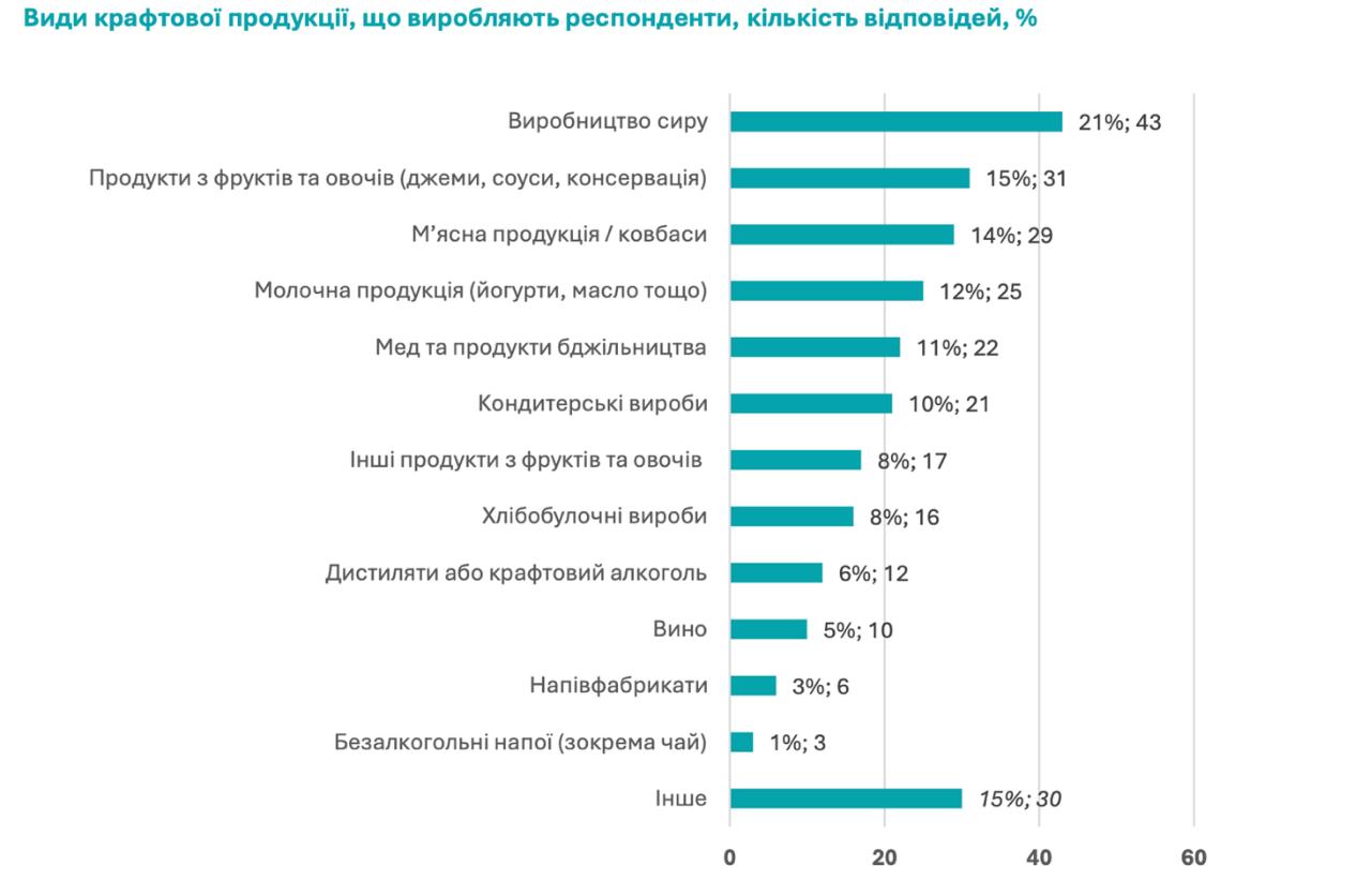 Долучитися до проєкту виявили бажання понад 400 крафтових виробників харчових продуктів. Половина з них пройшла розширене анкетування. Найбільш представлені категорії — виробництво продуктів переробки молока, овочів, фруктів та м’яса.